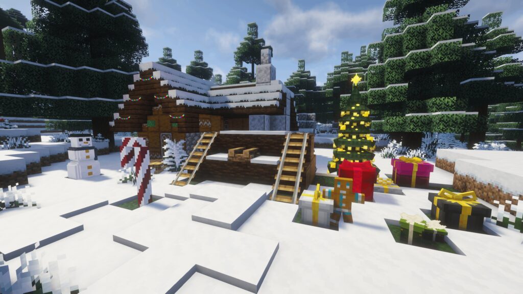 Use datapacks to force more frequent snowfall, even in biomes that don’t normally snow. This creates a magical winter wonderland across your world and keeps the Christmas vibe consistent everywhere.