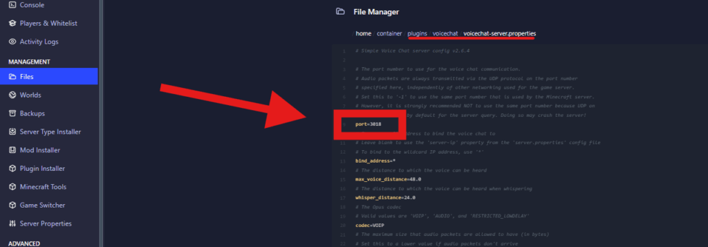 plugins(for Bukkit/Spigot/Paper) ormods(for Forge/Fabric/Quilt) folder. - Restart the server once so that the system generates a unique port and the initial configuration files.