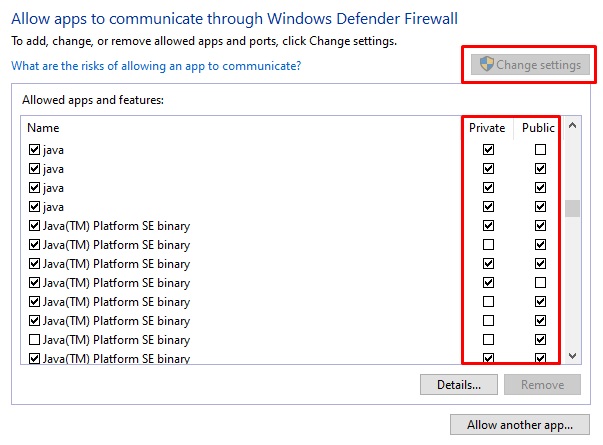 Do I need to allow both Java and Minecraft?